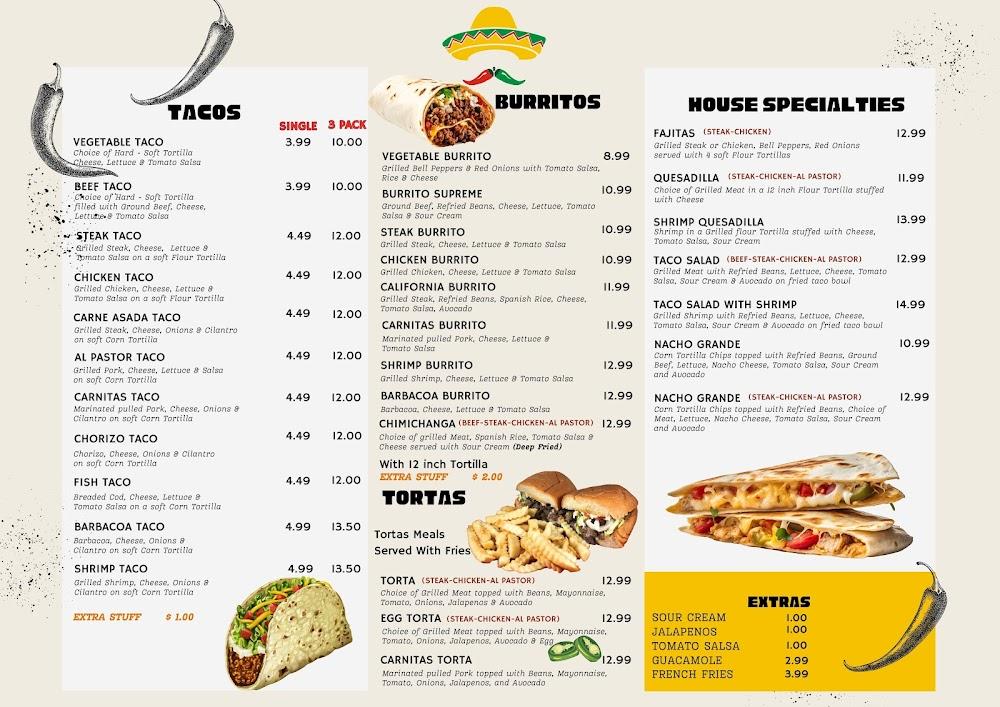 The menu at Dos Amigos is diverse, featuring 78 mouthwatering options. Start with appetizers like salsa, chips, and guacamole for a casual snack. Breakfast burritos cater to a range of tastes from sausage to chorizo. Tacos feature both beef and vegetable varieties, ensuring everyone's preference is covered. House specialties like tacos salads and enchiladas showcase tradition. Fajitas and quesadillas promise hearty meals that will satisfy any appetite. Delve into delicious burgers for a twist on Mexican flavors. The extensive menu caters to a wide range of preferences, making it a culinary delight.