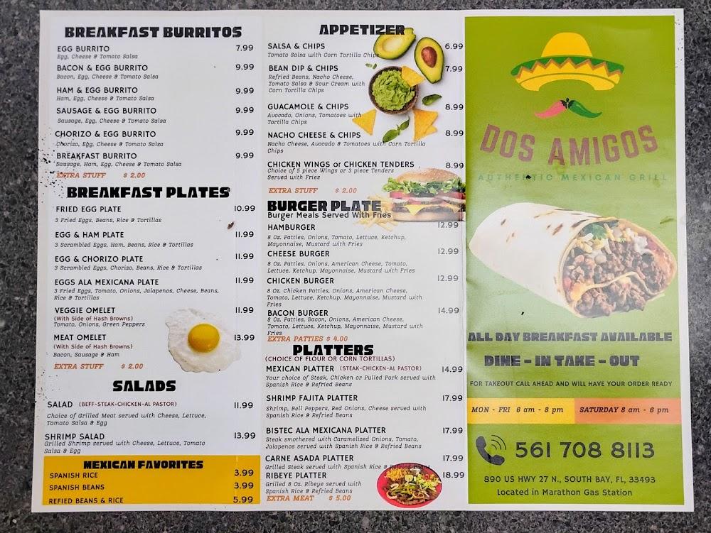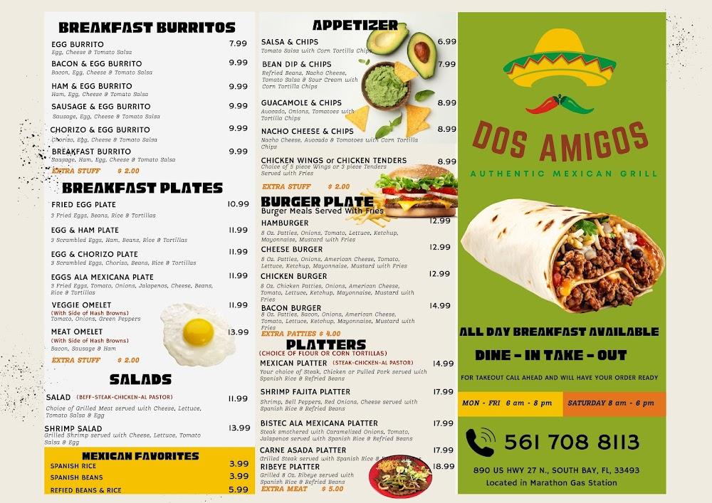 Welcome to Dos Amigos Mexican Restaurant, your go-to spot for healthy and fresh Mexican cuisine in South Bay, FL! Located at 890 US-27, we pride ourselves on serving delicious local specialties in a relaxed and inviting atmosphere. Whether you're stopping by for breakfast, lunch, or dinner, our quick service and accessible facilities ensure a delightful experience for everyone, including families and groups. Enjoy our flavorful menu featuring traditional dishes, small plates to share, and a selection of drinks. With takeout, delivery, and catering options available, Dos Amigos is perfect for any occasion. Come savor the taste of Mexico today!